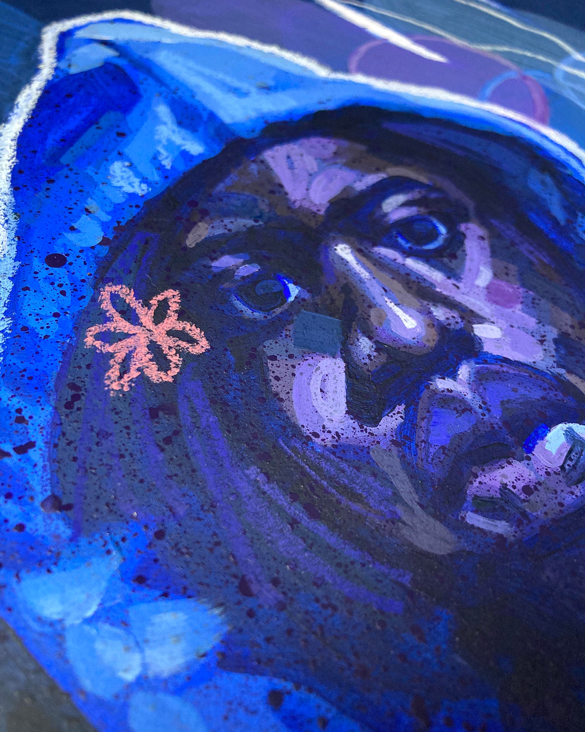 Acrylique, aérosol et pastels à l'huile sur papier format 30x40cm / 2025